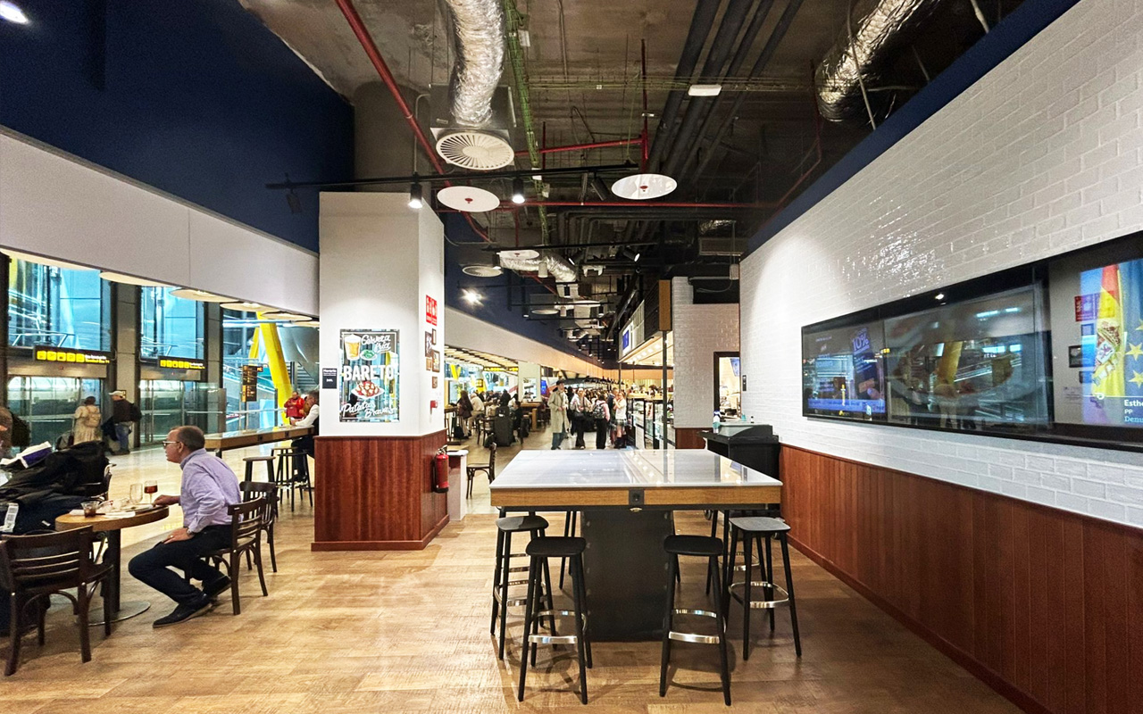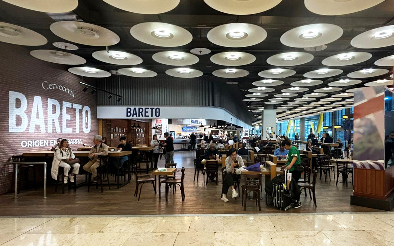 Bareto, al más puro estilo castizo, ya tiene presencia en la T2 del aeropuerto y ahora aterriza en la T4 como un tributo a los bares y tascas de siempre. La cervecería cuenta actualmente con 7 establecimientos en la ciudad de Madrid, situados en Alcalá, Atocha, La Moraleja, Chamberí, IFEMA Madrid y el aeropuerto Adolfo Suárez Madrid – Barajas. El nuevo establecimiento es una recreación del bar tradicional donde poder degustar una cerveza fría acompañada de una buena ración, y cuenta con una oferta gastronómica cuidada al detalle donde el picoteo se amplía con una carta muy dinámica que apuesta por la cocina de mercado. El local, de 630 m2 y capacidad para unas 200 personas, está situado junto al hall de llegadas de la T4 y abre 24h.