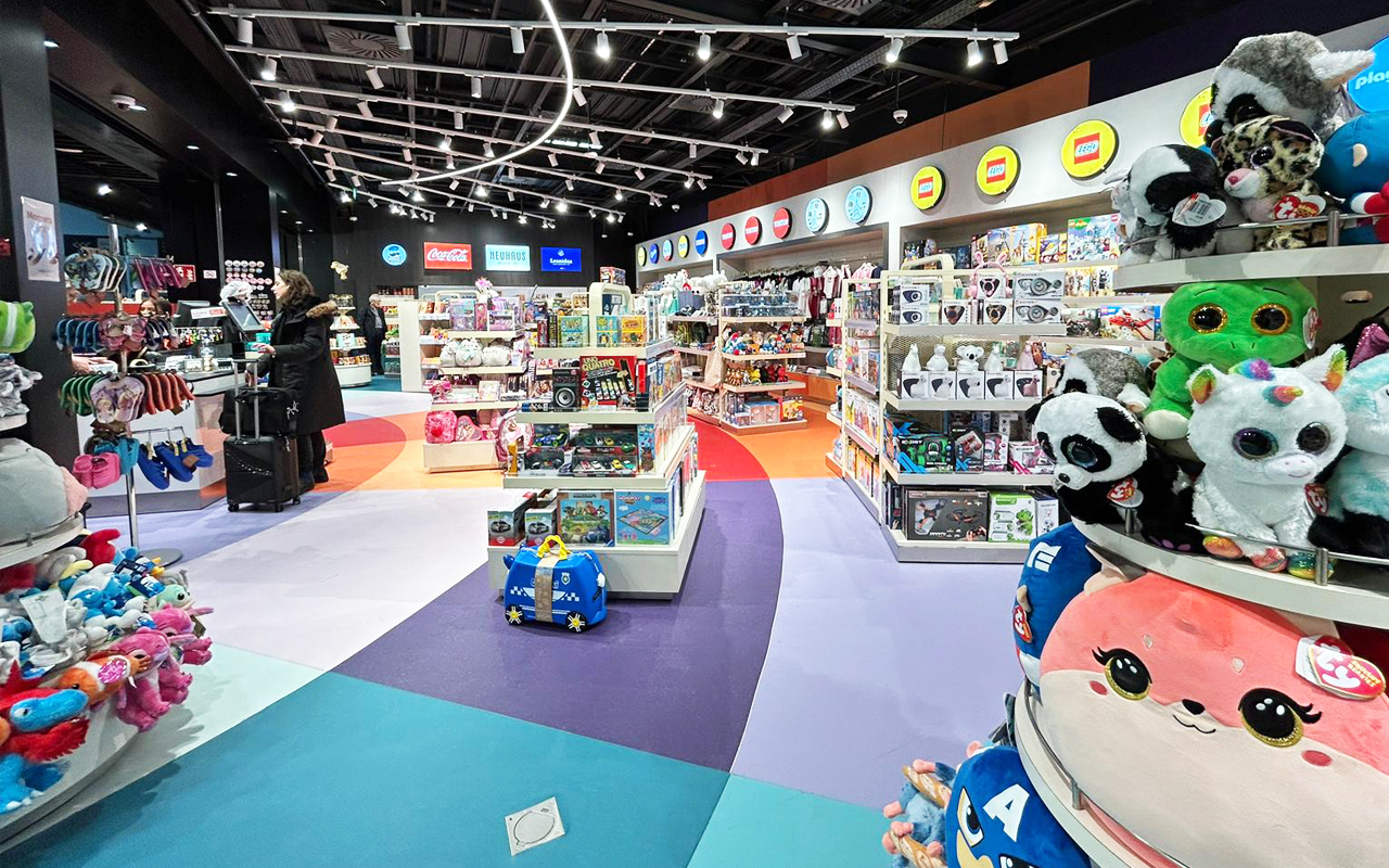 Por un lado, presentamos «The Gift Box», un espacio vibrante y lleno de color diseñado especialmente para el público infantil en el aeropuerto de Bruselas.